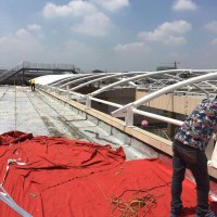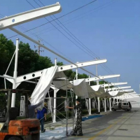 膜结构使用寿命及特点:膜结构车棚的篷布材质是膜结构,而膜材的特点是强度高、耐久性好、防火难燃、自洁性好,不受紫外线影响,使用寿命长,一般15-30年。具有高透光率,透光率为13%,对热能反射率73%,热吸收量很少。正是因为这种划时代的膜材料的发明,使膜结构车棚成为现代化的建筑。
